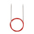 Die ChiaoGoo Red Lace Rundstricknadeln bestehen aus chirurgischem Edelstahl und haben ein rot ummanteltes Nylon-Seil mit Metallkern, der das Verdrehen des Seils verhindert. Die Spitzen sind schlank und unglaublich präzise, der Übergang zum Seil ist fein und kaum zu bemerken.